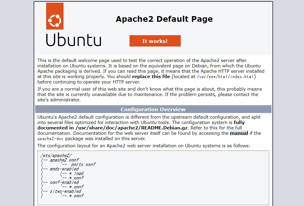 ページが表示されたら、Webサーバーの設定はひとまず完了です。