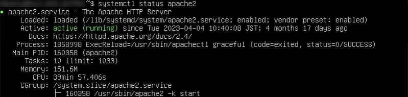 ソフトの確認で使用したコマンドを再度入力して、Webサーバーが動作しているか確認しましょう。