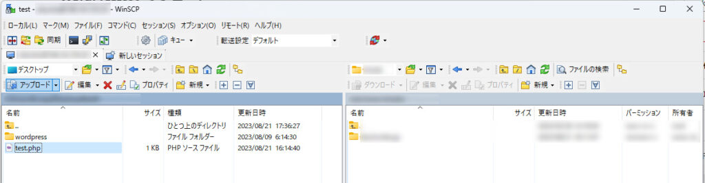 続いて、作成したファイルをWinSCPなどでサーバーにアップロードしましょう。
