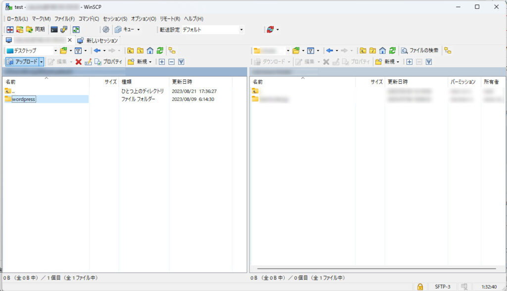 WordPressフォルダのアップロードは、PHPの動作確認のときと同じ要領です。