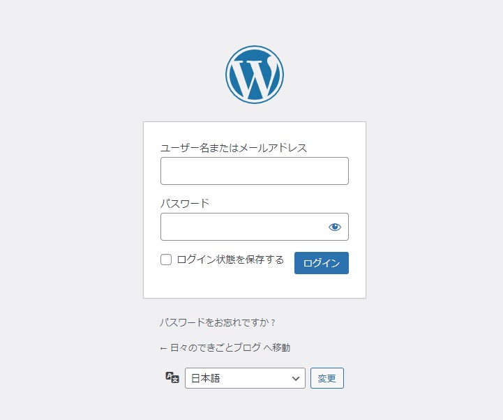 さきほど入力したユーザー名、パスワードを入力してログインできれば、WordPressのインストール完了です。