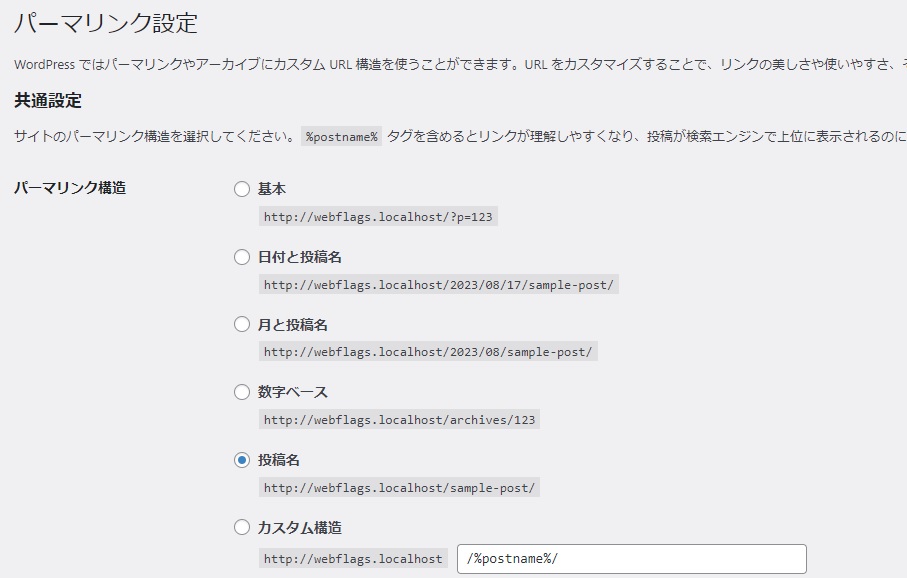 この設定はあとから変更できるので、WordPressのURL設定(パーマリンク)、ドメイン、サーバー証明書などWebサイトのURLに関わる設定を終わらせてから再度変更しましょう。
