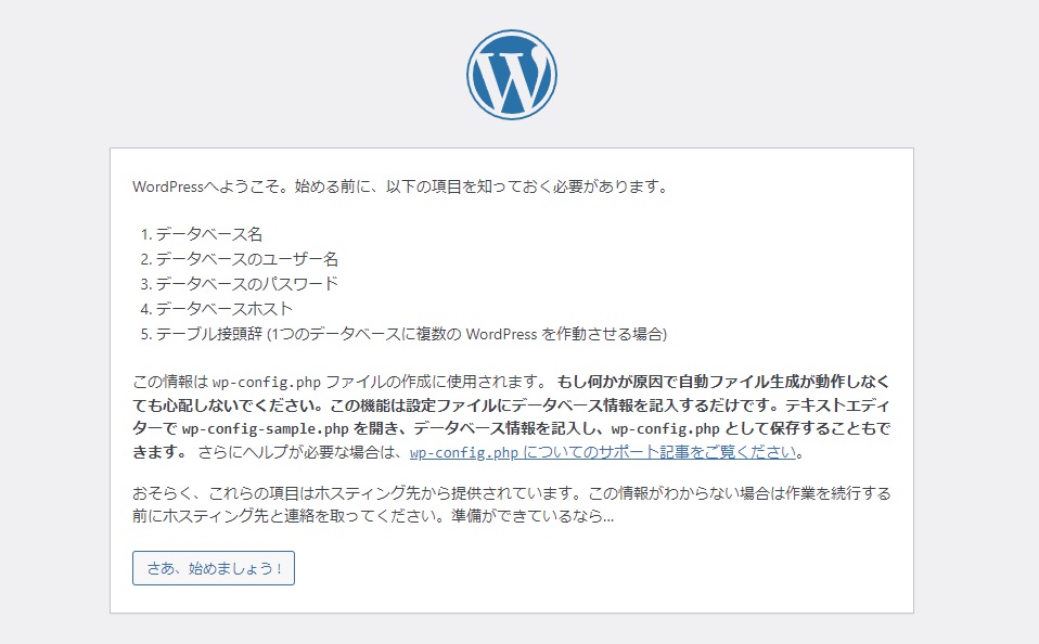 下記のようなページが表示されるので、「さあ、始めましょう!」をクリックしましょう。
