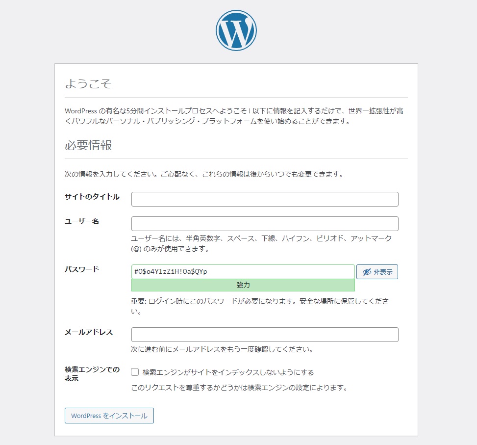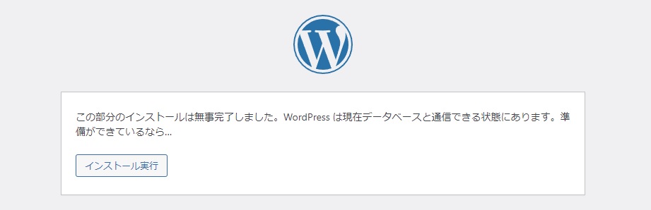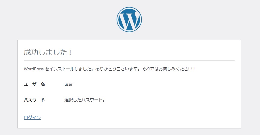 「WordPressをインストール」をクリックするとインストールがはじまり、次のページに移ります。